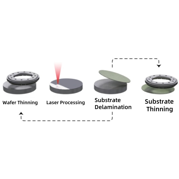 Interface Decomposition: Laser energy triggers gasification (e.g., GaN → Ga + N₂), generating plasma and thermal stress for controlled delamination.